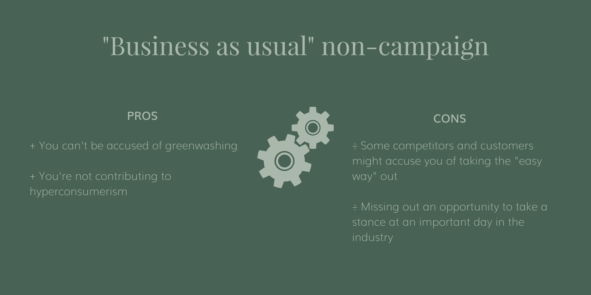 To help you make an informed choice about your Black Friday campaign, we present four different approaches to take and how they may affect your sustainability image.